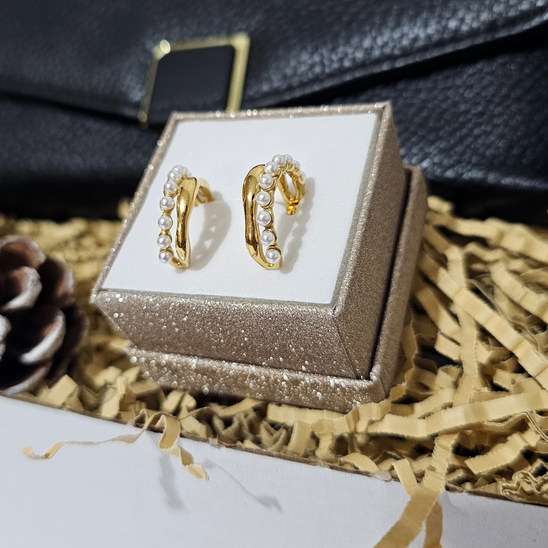 - Ένα σετ σκουλαρίκια με περίτεχνο σχέδιο ,χρυσό χρώμα