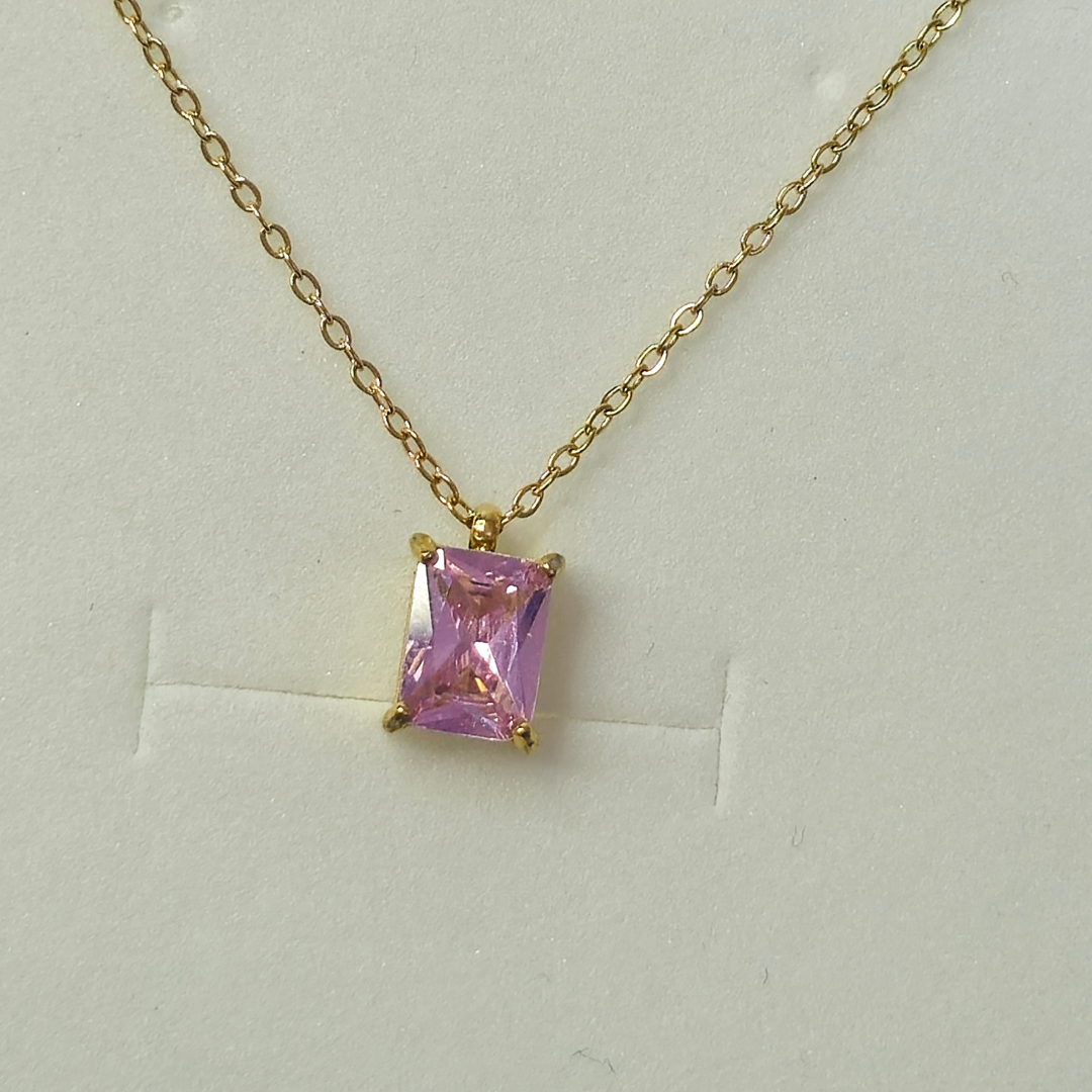 Υπέροχο κολιέ με σχέδιο ροζ στοιχείο , σε χρυσό χρώμα .Κατασκευασμένο από ανοξείδωτο ατσάλι.