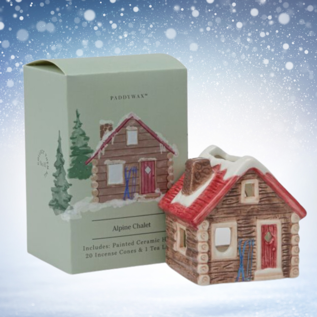 • ΧΡΙΣΤΟΥΓΕΝΝΙΑΤΙΚΟ ΚΕΡΑΜΙΚΟ ΣΠΙΤΑΚΙ Alpine Chalet StyleΝο 5 με 20 αρωματικούς insence κώνους & Ρεσώ- Paddywax